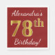 Servilleta De Papel Red, Faux Gold 78th Birthday + Custom Name