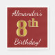 Servilleta De Papel Red, Faux Gold 8Cumpleaños + Nombre Personalizado