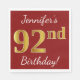 Servilleta De Papel Red, Faux Gold 92nd Birthday + Nombre personalizad