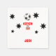 La servilleta de la fiesta de cumpleaños del niño. Sexto cumpleaños. Matarlo a las seis. Fiesta de cumpleaños 6 de fútbol. Rojo, blanco y negro.
