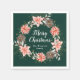 Esta divertida y festiva servilleta cuenta con una corona con poinsettias rojas y un hueco sobre un fondo verde oscuro. El texto combina secuencias de comandos manuscritas y fuentes serif para un aspecto elegante y sofisticado. Es perfecto para fiestas de vacaciones, brunch, fiestas de cena, casa abierta y más.