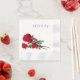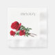 servilletas bodas con rosas rojas. Los tallos de rosa realistas con hojas decoran las servilletas blancas que vienen en muchos estilos. Incluya la fecha del boda en números negros o elimine ese texto. Útil para fiestas prematrimoniales, ducha de novia y recepción de bodas.