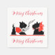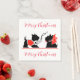 Perros de terror negro dándose regalos entre ellos. Feliz saludo de Navidad.