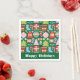 Un elegante y moderno patrón de servilletas para Navidades con ilustraciones geométricos de inspiración retro de adornos, medias, dulces, regalos, árboles de Navidad, copos de nieve, campanas y más. Esto se puede personalizar con un monograma o con su propio mensaje. Los colores son verde, rojo, blanco, azul y rosa.