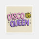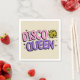 Diseño de texto de estilo retro colorido "Disco Queen" con decoración de disco negro y amarillo