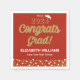 El "Gold Script Confetti Congrats Grad Pink Napkin" es un elegante y elegante favor de la graduación diseñado por CaMiDesigns. Estas servilletas presentan un diseño de caligrafía audaz, emparejado con un confetti dorado y una tapa de graduación, lo que las convierte en el complemento perfecto para su celebración de graduación. Están diseñados para añadir un toque de sofisticación y alegría al evento. Para pedidos, envío, información de productos y asistencia adicional, póngase en contacto directamente con la Atención al cliente de Zazzle.