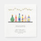 Las toallas de la ducha de boda del bar cuentan con licor acuático y botellas de vino en una estantería con luces de cuerda colgadas encima. Hay espacio para una nota especial a los clientes, así como nombres e incluso fechas. (arte original de Shelley Winters Design)