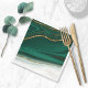 Este conjunto de diseño boda, con su patrón abstracto de ondas fluyentes y venas de oro brillante, trae a la mente llamativas formaciones rocosas y gemas brillantes. La paleta de colores con tonos verde esmeralda es muy bonita. La servilleta de papel que se muestra aquí tiene todo lo anterior con plantilla para agregar fácilmente sus nombres y fecha de boda. Busque ID903 para ver otras opciones de color y piezas de coordinación para esta colección de bodas única.