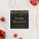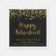 Tipografía de escritura moderna HAPPY RETIREMENT Napkins personalizada con el nombre del jubilado, años de servicio y el nombre de la empresa o negocio, organización o escuela. Borde de confeti purpurina dorado y texto dorado sobre su elección de color de fondo (mostrado en negro). CAMBIOS: Cambia el color de fondo negro y/o cambia el estilo de fuente de texto personalizado, el tamaño, el color o la posición en EDIT para un aspecto personalizado. ASISTENCIA: Para obtener ayuda con la modificación o personalización del diseño, el cambio de color, el redimensionamiento, la transferencia del diseño a otro producto o si desea coordinar elementos, póngase en contacto con el diseñador ANTES DE PEDIDOS a través de la pestaña del MENSAJE de charla de Zazzle o envíe un correo electrónico a makeitaboutyoustore@gmail.com.
