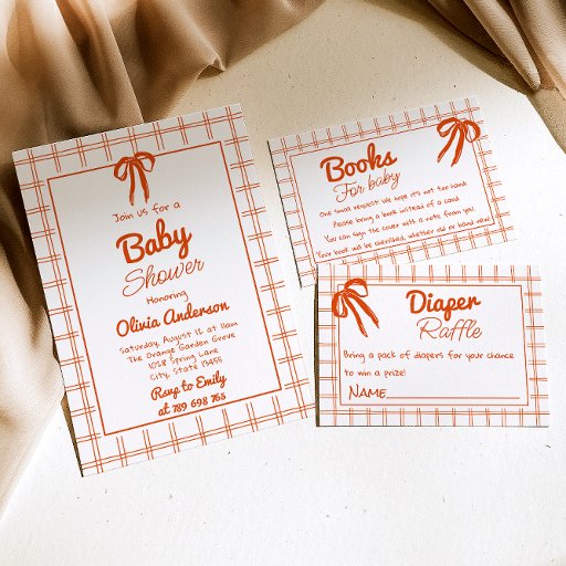 Hand Drawn Neutral Bow Gingham Baby Shower SuiteDiseñado por marouane boukouyen