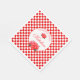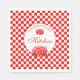 Cocina y apellido personalizado en servilletas de papel de cuadros rojos y blancos retro.
