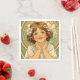 Illustration art nouveau d'une enfant avec des fleurs blanches dans les cheveux, dans un cadre ornementé de rinceaux