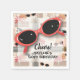 A large pair of retro red sunglasses, pink flamingos, pink palm trees vintage design on these birthday party napkins are perfect for any age. MATCHING items in our collection.