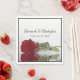 Estas hermosas servilletas harán que tu boda sea más especial. El conjunto presenta un bonito diseño floral moderno con una única rosa roja de tallo largo que refleja una piscina con olas y olas. Arriba hay espacio para los nombres de la pareja y la fecha de boda.