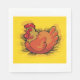 Un gallo sentado sobre una paja. Este diseño se ve realmente efectivo en estas servilletas de papel