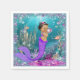 Sirena de servilletas para la ducha de bebé con adorables comadronas afroamericanas con cola morada de bonito sobre un hermoso rosa y azul verde azulado bajo el fondo del mar. Estas servilletas de papel tierno de la sirena se pueden personalizar con texto.