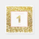 Estas servilletas rosa y dorada de primer cumpleaños tienen un fondo dorado purpurinoso con un oro purpurinoso número 1 en el centro. Dicen "Feliz Cumpleaños (tu nombre)" y pueden ser personalizados.