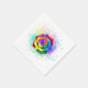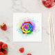 Rosa grande y floreciente con pétalos de arco iris sobre fondo blanco, pintado con salpicaduras de pintura colorida y brillante. 3.ª