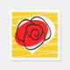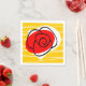 Diseño de mediados de siglo, de estilo retro, con un recuerdo de rosa rojo procedente de una fiesta española con un fondo de rayas doradas amarillas y blancas. Un diseño de personalizable en blanco, negro, rojo y amarillo para que puedas personalizar con tu propio texto, imágenes e ideas. Imagen original de arte digital.