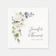 Diseño floral de acuarela de estilo contemporáneo con una paleta de colores neutros, esta servilleta de papel tiene un hermoso ramo en cascada de rosas blancas y blanquecinas, hortensias y flores mezcladas con vegetación. Personaliza con los nombres de la novia y del novio y la fecha del boda. Este diseño es una elección maravillosa para recepciones de bodas, fiestas de compromiso y otras celebraciones para la novia y el novio.