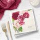 Una florida y brillante multitud de rosas en tonos burdeos y crema es el punto fuerte de muchas de las piezas de esta suite boda que también cuenta con un elegante guión de texto y un diseño moderno. La servilleta de papel boda que se muestra aquí tiene un borde de rosas. Introduzca fácilmente la fecha de boda y las iniciales de la novia y el novio utilizando la plantilla proporcionada. Busque ID584 para ver todas las piezas coincidentes en este hermoso conjunto de bodas.