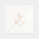Agregue un detalle elegante a su día especial con esta servilleta de fiesta personalizada. Este diseño presenta tipografía elegante "hola" en rosa oro con texto personalizado. Puede personalizar el texto para cualquier evento o fiesta. Las invitaciones y suministros de fiesta coincidentes están disponibles en mi tienda BaraBomDesign.