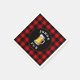 Una servilleta de pub personalizado con un vaso alto de cerveza espumosa y su nombre. Personalice el nombre del ejemplo en la plantilla de texto para su cueva de jardín, pub o man. El estilo rústico rojo y negro de las mantas de búfalo en el fondo da calidez al diseño y un toque masculino.