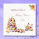 Añade un toque de encanto a tu celebración con estas servilletas de papel Baby Shower Tea Fiesta personalizadas. Un bonito diseño con tetera y tetera floridas y un estupendo puesto de pasteles llenos de deliciosos pastelitos con una suave glaseada rosa y amarilla y cerezas rojas dulces, todo ello con un crujiente fondo blanco. La elegante tipografía lila y los tipos de letra completan el aspecto, haciendo de estas servilletas la adición perfecta a su ducha de bebé fiesta de té. Una manera encantadora de honrar a la futura madre y crear un entorno agradable e inolvidable para los huéspedes. Ideal para añadir un toque caprichoso y elegante a su día especial.