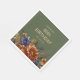 Elegantes y elegantes toallas de papel de cumpleaños número 80 para mujeres con flores de color azul marino y naranja rojizo y flores de color agua azul marino y vegetación sobre un fondo verde cazador. Personalizada con el nombre de la invitada de honor, su edad y su fecha fiesta. Contáctame para obtener ayuda con la personalización o para solicitar la correspondencia o coordinación de los productos de Zazzle.