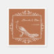 Personalice una servilleta única para su boda o ducharse con un conjunto de servilletas Rust Peacock Flourish Bridal Shower. El diseño de la servilleta incluye un elegante pavo real adornado con flores. Personaliza con los nombres del novio y la novia junto con la fecha del boda. También hay material de boda adicional disponible con este diseño.
