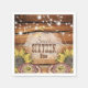 Celebre su día especial con estas servilletas rústicas de madera de granero con luces de cuerda y girasoles.
