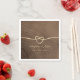 Sencillas toallas bodas personalizadas de madera rústica, sobrias y elegantes, con corazón de cuerda dorada y escritura moderna de caligrafía.