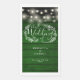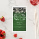Diseño rústico boda con luces de cuerda de bonito y flores, estas elegantes toallas de papel se pueden personalizar con su información en letras blancas de moda sobre el fondo de paneles de madera verde esmeralda. Diseñado por Thisisnotme©