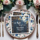 Un elegante diseño de Bodas con elegante caligrafía, completado por una maravillosa madera azul, luces de cuerda de jardín y floral azul blanco con purpurina dorado. Puedes personalizar esto con tus detalles.