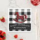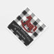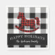 Búfalo rústico cubierto de fondo gris y negro con un caballo mecedor en rojo y mejores deseos de vacaciones en escritura decorativa manuscrita