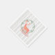 Toallas de papel con un diseño de acuarela digital de estilo boho. Una silueta de reno naranja pastel dentro de una corona de hojas de hierbas. Setas y helechos forestales a sus pies. Patrón de abedul gris y blanco en el fondo.