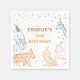 Make your little one's 2nd birthday party unforgettable with this delightful safari animal birthday party napkin. Each animal is adorned with a cute party hat, enhancing the celebratory vibe.