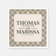 Add a touch of designer elegance to your cocktail hour or reception with these Art Deco-inspired napkins. Featuring a sophisticated sage green and dusty rose palette, these paper napkins showcase a personalized monogram and a stylish geometric pattern. Perfect for weddings, rehearsal dinners, or engagement parties. A chic and practical detail that perfectly matches your modern vintage wedding theme.