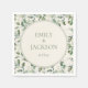 Elegante salvia hojas de eucalipto verde sobre servilletas de papel boda de color crema. Incluye los nombres de la novia y del novio y la fecha del boda. El texto es personalizable. Contáctenos para obtener ayuda sobre la personalización o para solicitar productos de coordinación.