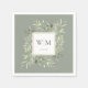 Con delicadas hojas de color agua verde sobre un fondo verde sabio, estas servilletas de papel botánico de moda se pueden personalizar con sus iniciales de monograma y fecha especial. Diseñado por Thisisnotme©