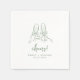 Unique hand drawn cheers champagne glasses toast design, with playful handwritten font in soft sage green, fun and elegant. Great napkins for casual garden engagement party, artistic boho beach wedding party, and modern whimsical bridal shower.