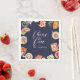 Una servilleta única para completar la búsqueda. Con alimentos de brunch, ilustraciones acuarelas rodeando un encabezado que dice "Salud para amar... Futuro MRS. Si necesitas algún artículo que coincida, por favor avísenme (Maria) ¡Feliz de ayudar!