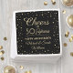 Añada un toque elegante y personalizado a las decoraciones fiestas de aniversario con estas servilletas personalizados de papel negro y dorado. El diseño presenta el moderno personalizable de caligrafía de escritura "Cheers to 50 Years" y los falsos Relieves metalizados de oro en un fondo negro. Tenga en cuenta que el texto es de color impreso, no de Relieve metalizado metálico. Esta plantilla está preparada para una celebración dorada del 50 aniversario, pero es simple de personalizar a un año diferente o a otra ocasión, como un cumpleaños. ¡Feliz aniversario!