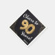 ¡Nápoles de fiesta de cumpleaños de color negro y dorado 'Saludos a 90 años! El diseño incluye una pizarra negra rústica con un globo de 90 helos de oro falso, confetti de oro falso y nombre.