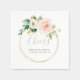 Compliquen su evento boda clásico con las servilletas de las flores geométricas de otoño boda. El diseño se compone de flores de color rosa y blanco con hojas verdes, adornando un marco geométrico dorado.