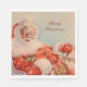 Aquí viene Santa Claus a través de la nieve y la ventisca en la víspera de los Navidades en estas servilletas de papel.