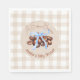 Una acogedora impresión de gingham, una colección de duchas para bebés con temática de café para la futura madre.