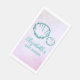 Ducha de bebé con conchas verde azuladas y fondo de color morado lavanda