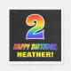 Este divertido, colorido y alegre diseño de servilletas de papel de cumpleaños presenta un gran número "2" y el mensaje "FELIZ CUMPLEAÑOS", ambos con un colorante inspirado en el patrón de gradiente del espectro del arcoiris, junto con un nombre de destinatario personalizado amarillo audaz. El fondo es negro de color. Las servilletas de papel con temas de cumpleaños como esta podrían ser usadas en un fiesta celebrando el segundo cumpleaños de alguien. [~Z0000476]