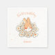 Mignon lapin entouré d'élégantes fleurs pour la fête d'anniversaire et le baby shower de votre enfant. Serviette en papier personnalisée avec le nom de votre enfant. Dessin d'un petit lapin entouré de fleurs. Produit faisant partie d'une collection.